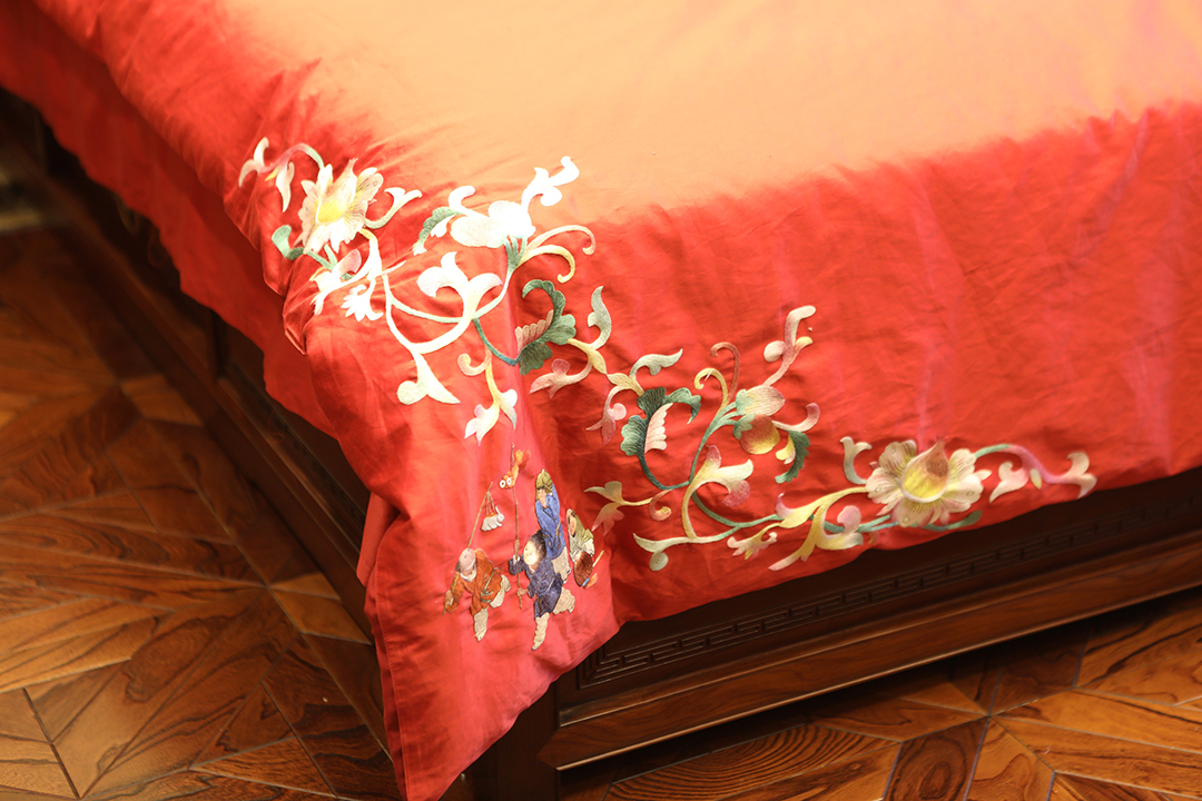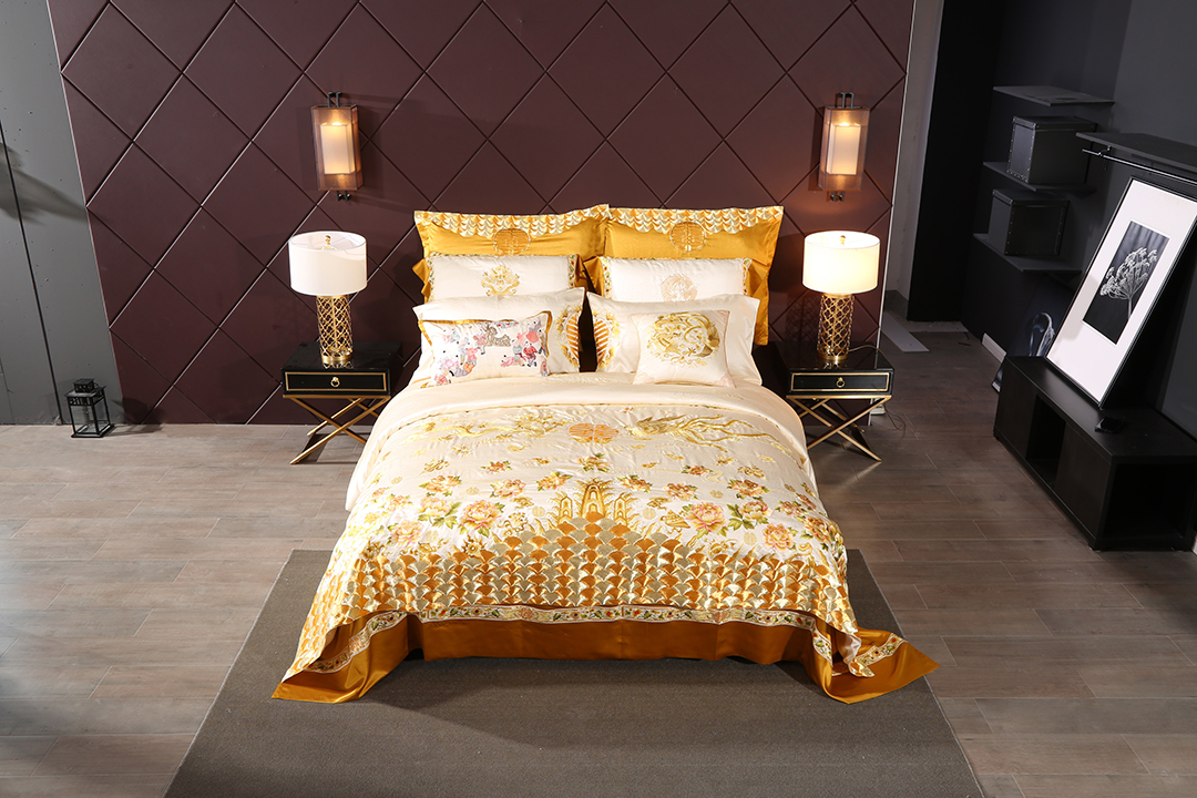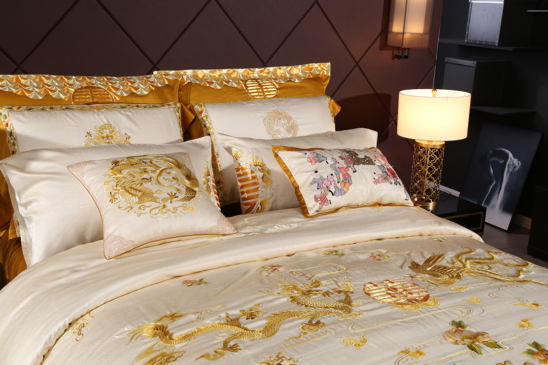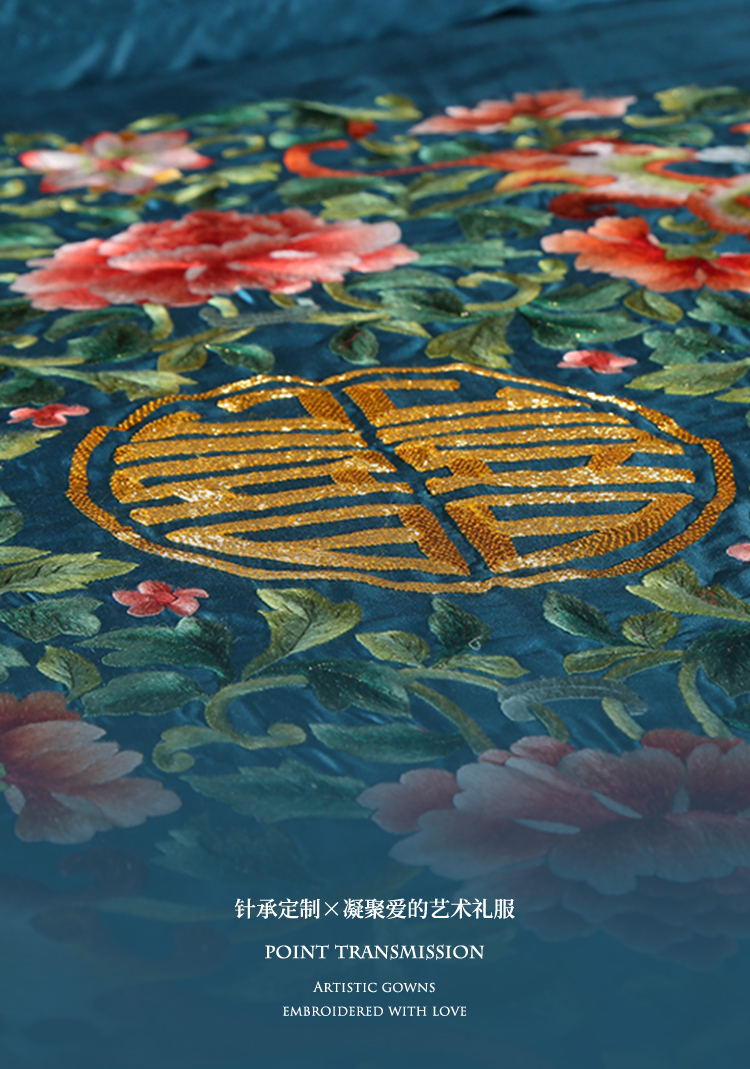 针承高定家纺刺绣,从图案纹样设计、到面料选择、手工刺绣最后剪裁缝制为成品。