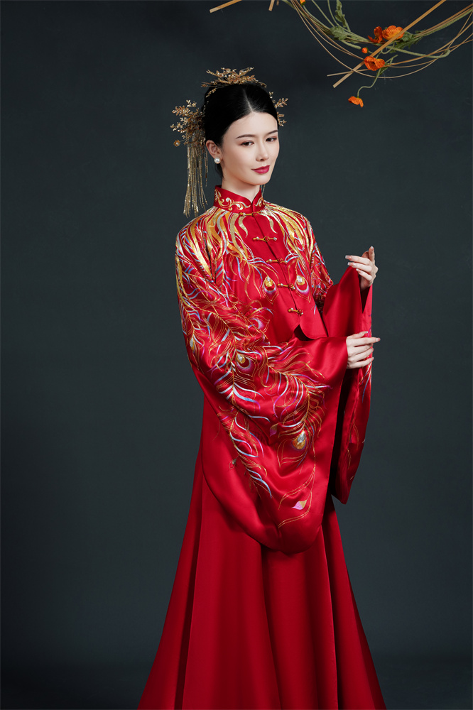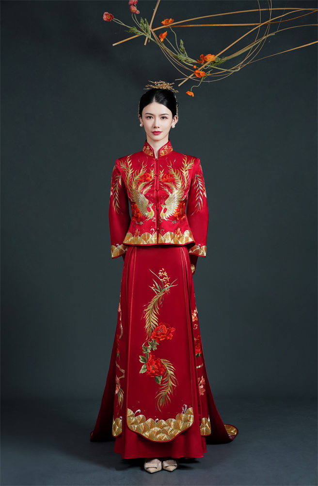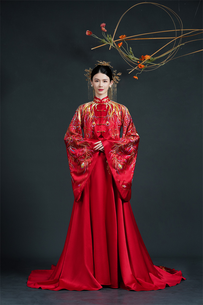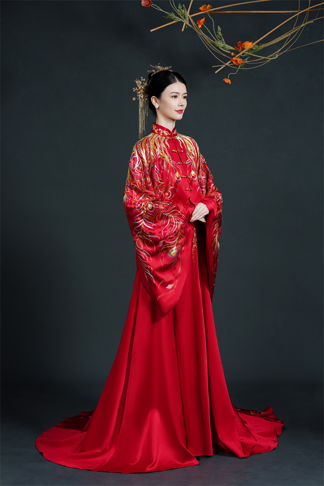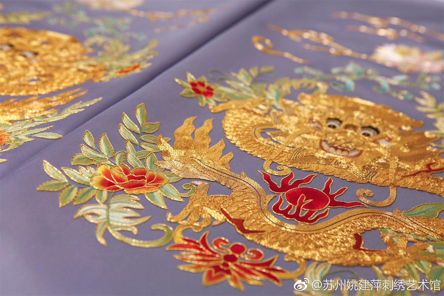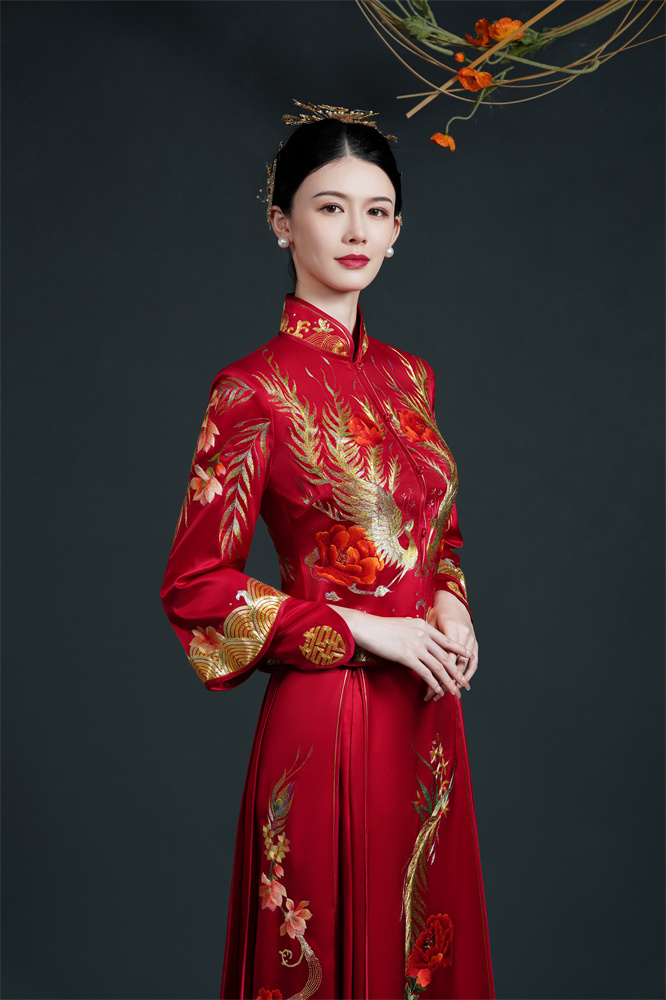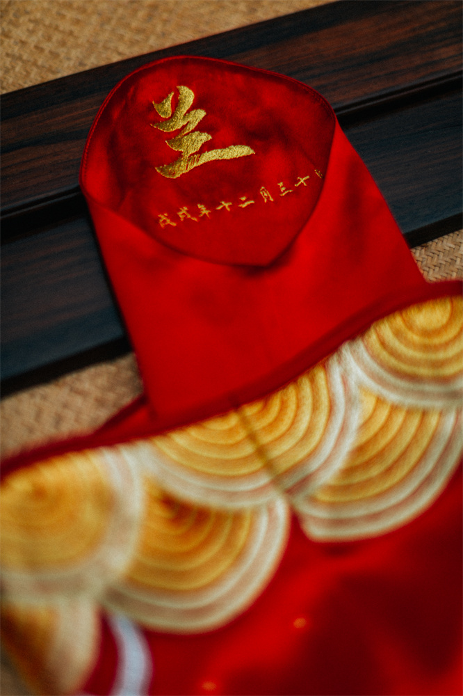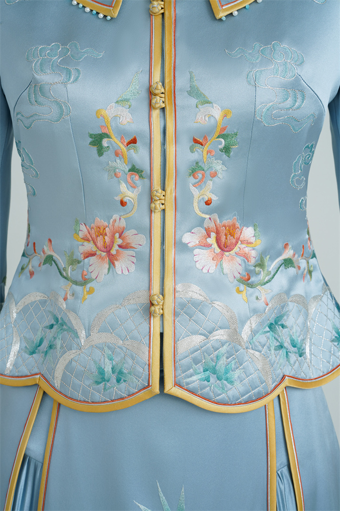 Stitch: Rolling stitch; gold couching embroidery; scattered interlocking stitch; interlocking stitch; bead embroidery